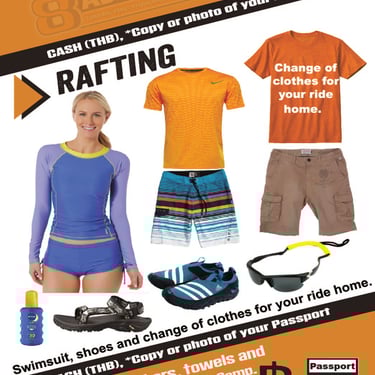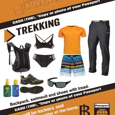 • Please remember a change of clothes as you will get wet! A swimming suit (quick drying shorts to wear over swimsuit is recommended for comfort and cultural sensitivity), athletic shoes, sunscreen, refillable water bottle, small day pack, dry set of clothes, socks and dry shoes or sandals