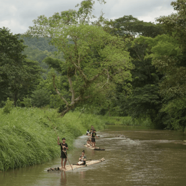 Refreshment by sightseeing throughout the local living by bamboo rafting 45 mins