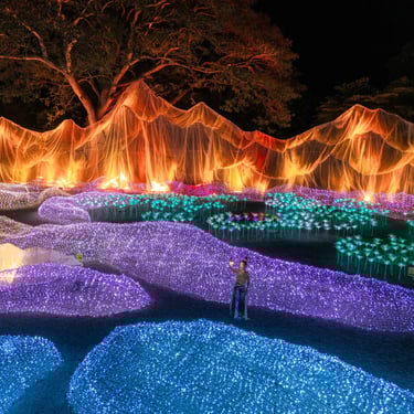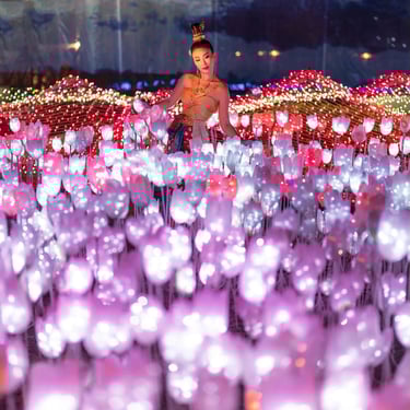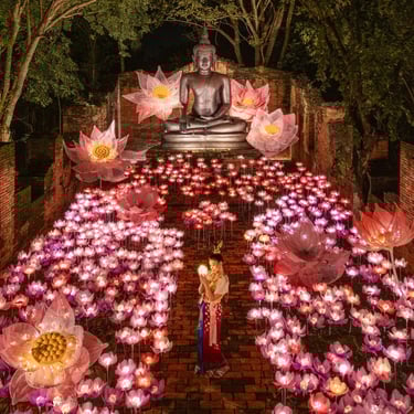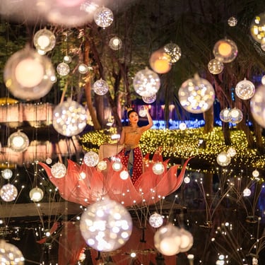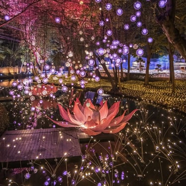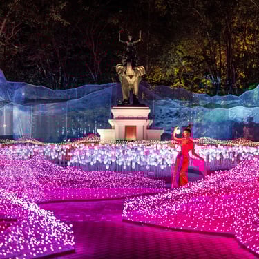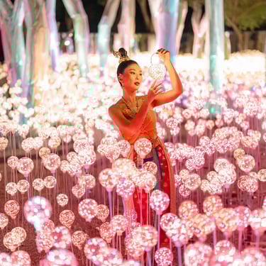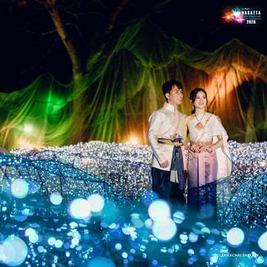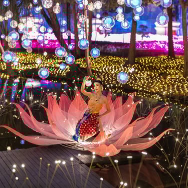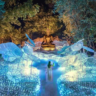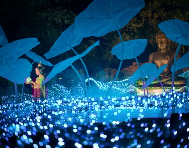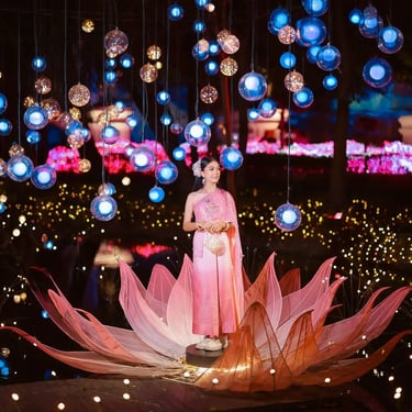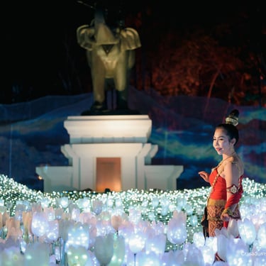 Walk through 24 magical zones of lights inspired by Thai legends, flowers, and literature. From the Lotus of Enlightenment to the Whispering Rose , the God of Thunder to the Milky Way — every corner tells a story in light.