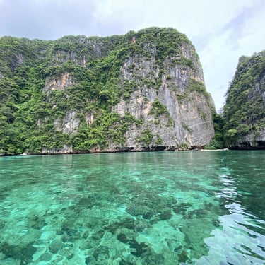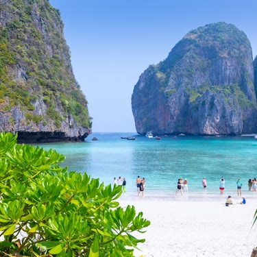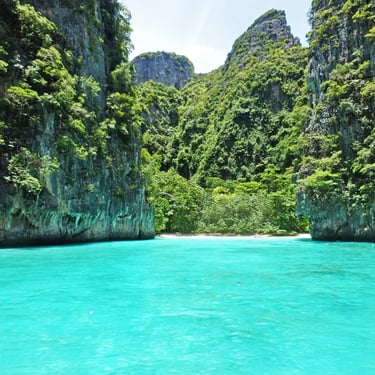Arrive at Maya Bay, the world-famous beach featured in the Hollywood movie “The Beach.”