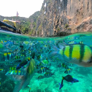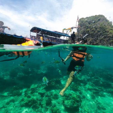 This exciting day trip by join-in speedboat takes you to explore the natural beauty of Phi Phi Leh and Bamboo Island, with spectacular views of limestone cliffs, crystal-clear waters, and vibrant marine life.
