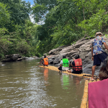 Immerse yourself in the peaceful charm of rural Chiang Mai on this full-day Elephant Observation, Waterfall & Bamboo Rafting adventure.