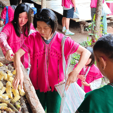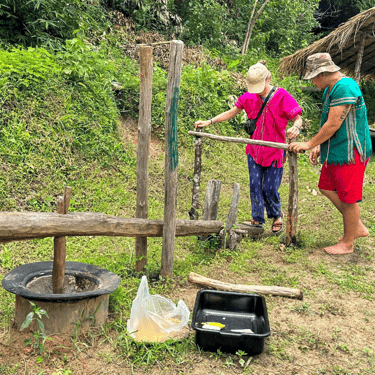 Receive a warm welcome and change into traditional Karen clothing.