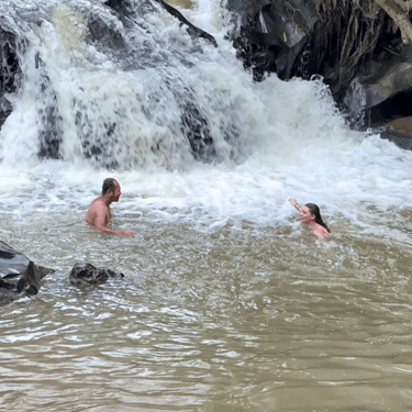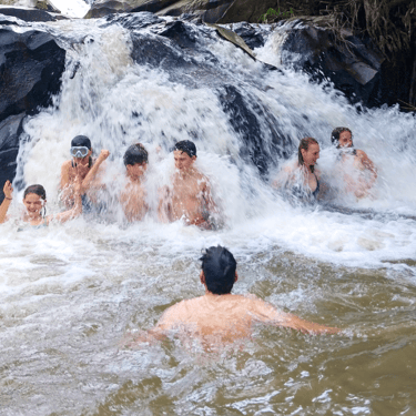 Begin a 1-hour moderate hike through rice terraces, waterfalls, and lush forest.